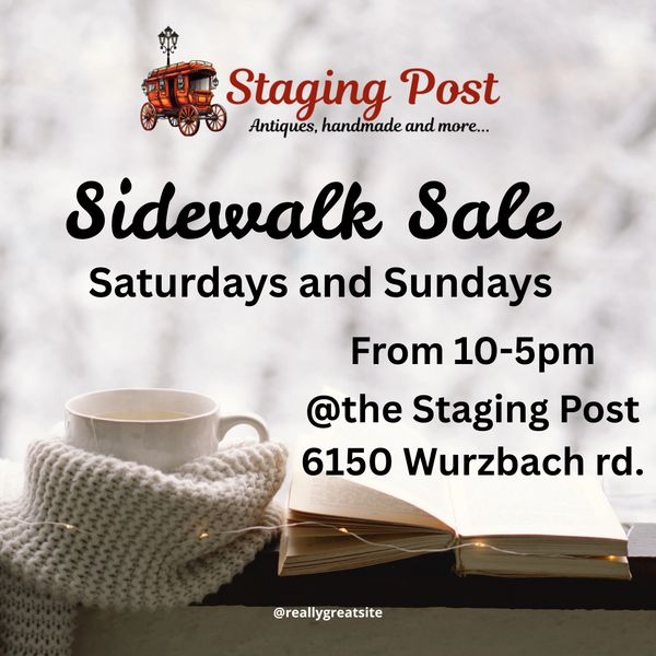 Come on out to the Staging Post and shop til' you drop! Check out our vendor side walk sale on Saturdays and Sundays from 10-5. Once your done browsing the sidewalk sale you can mosey on into the store. We have great hand made items, Antiques and vintage inside the store. If your'e an interested sidewalk sell vendor inquire inside the store for more information.